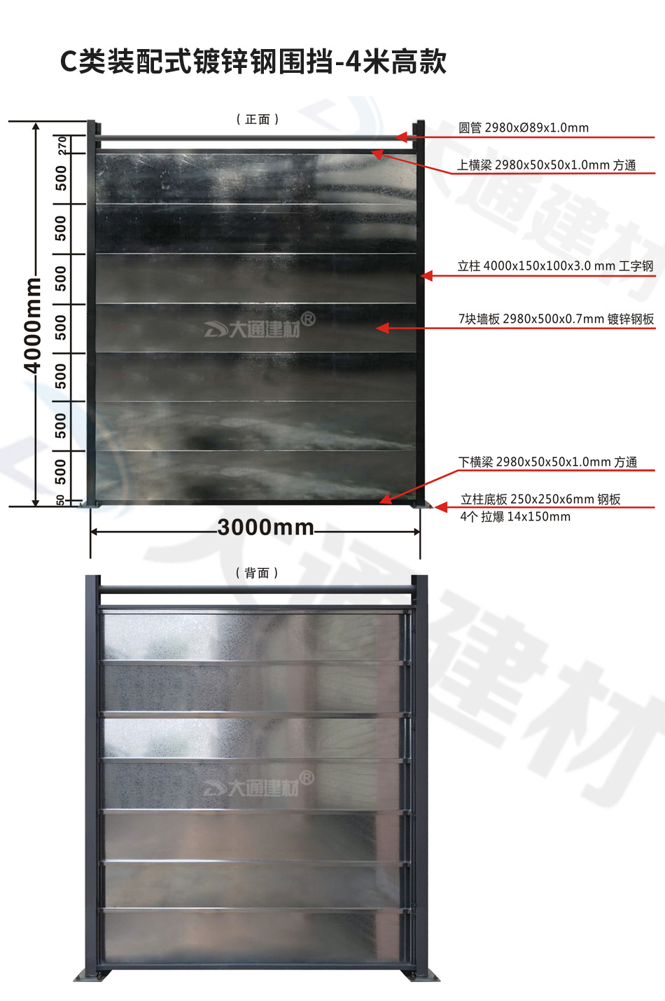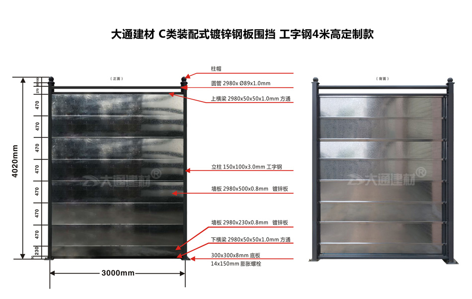 4米高C類裝配式鍍鋅鋼結(jié)構(gòu)圍擋-深圳建筑工程施工外圍圍擋C款-A/B/C類圍擋-深圳市大通建材有限公司鋼圍擋生產(chǎn)定制廠家