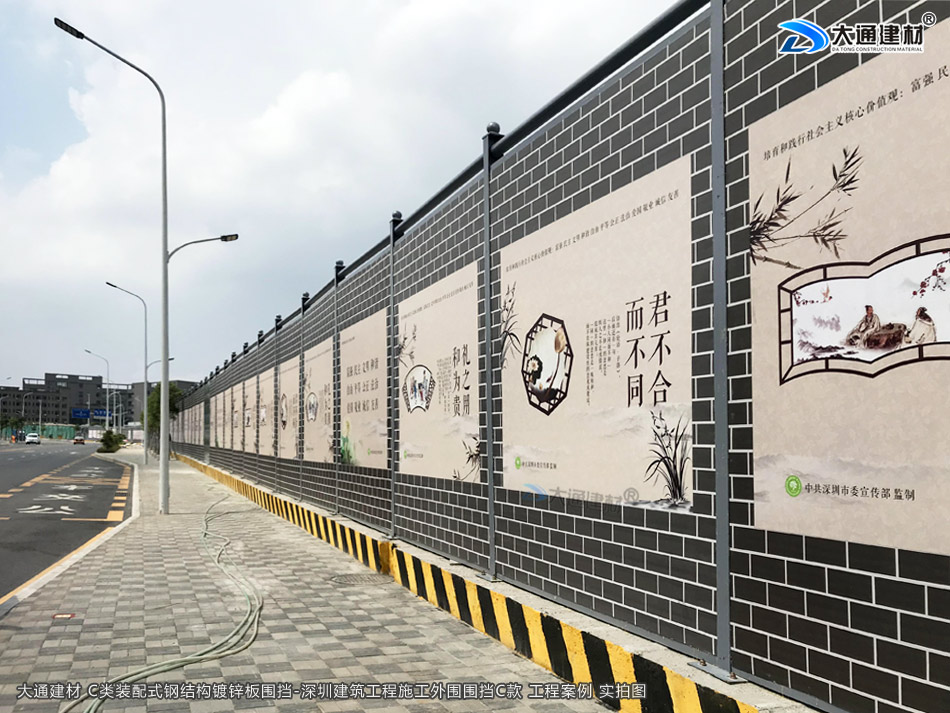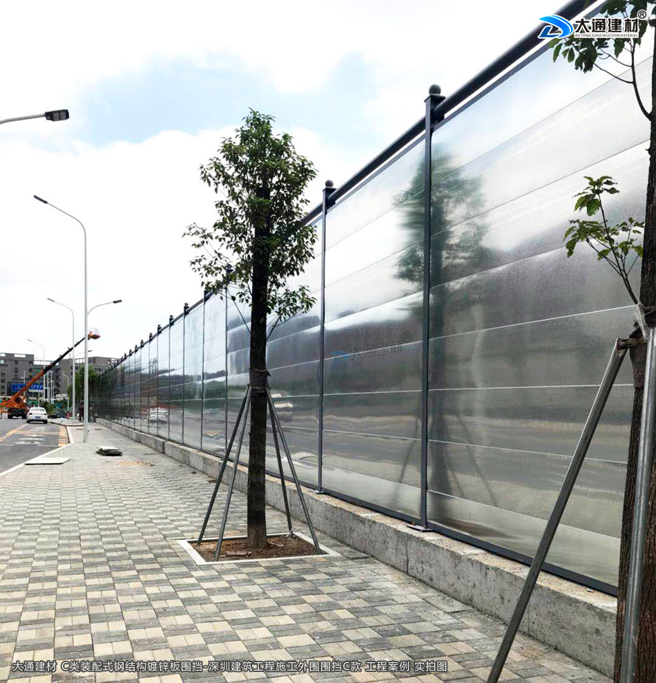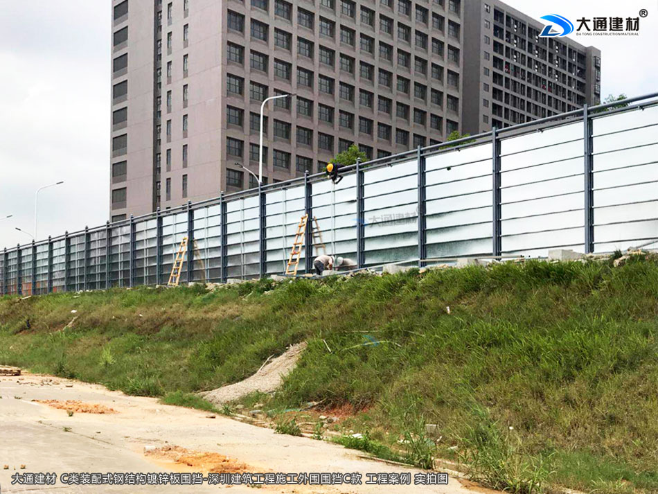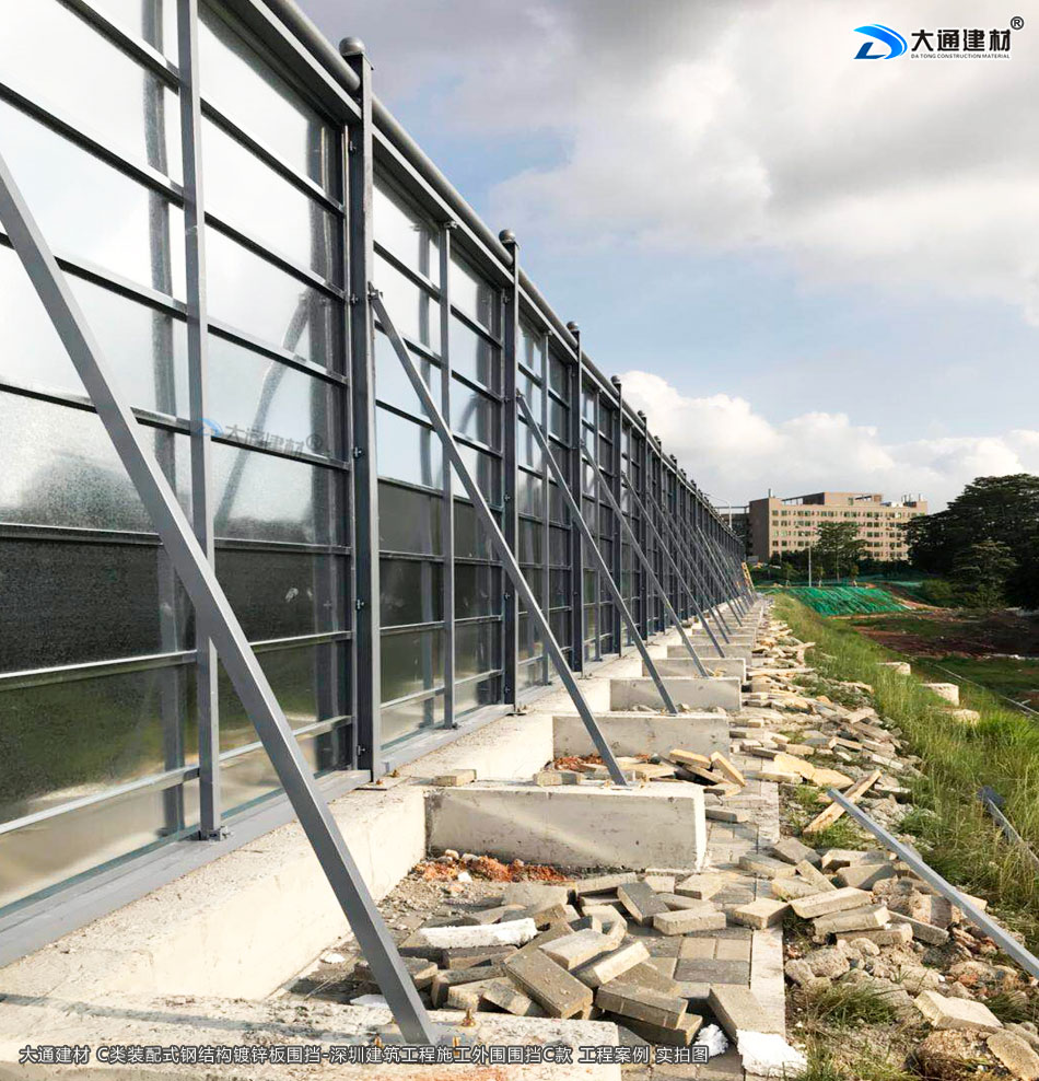深圳市大通建材生產(chǎn)的C類裝配式鍍鋅鋼結(jié)構(gòu)圍擋4米高定制款,把深圳市龍華區(qū)建筑工程施工現(xiàn)場(chǎng)圍起來(lái),為施工安全保駕護(hù)航。